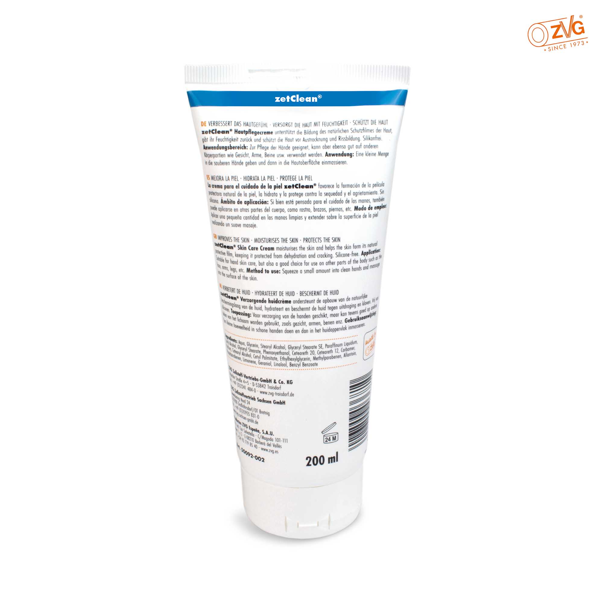 zetClean® Hautpflegecreme unterstützt die Bildung des natürlichen Schutzfilmes der Haut, gibt ihr Feuchtigkeit zurück und schützt die Haut vor Austrocknung und Rissbildung. Silikonfrei.